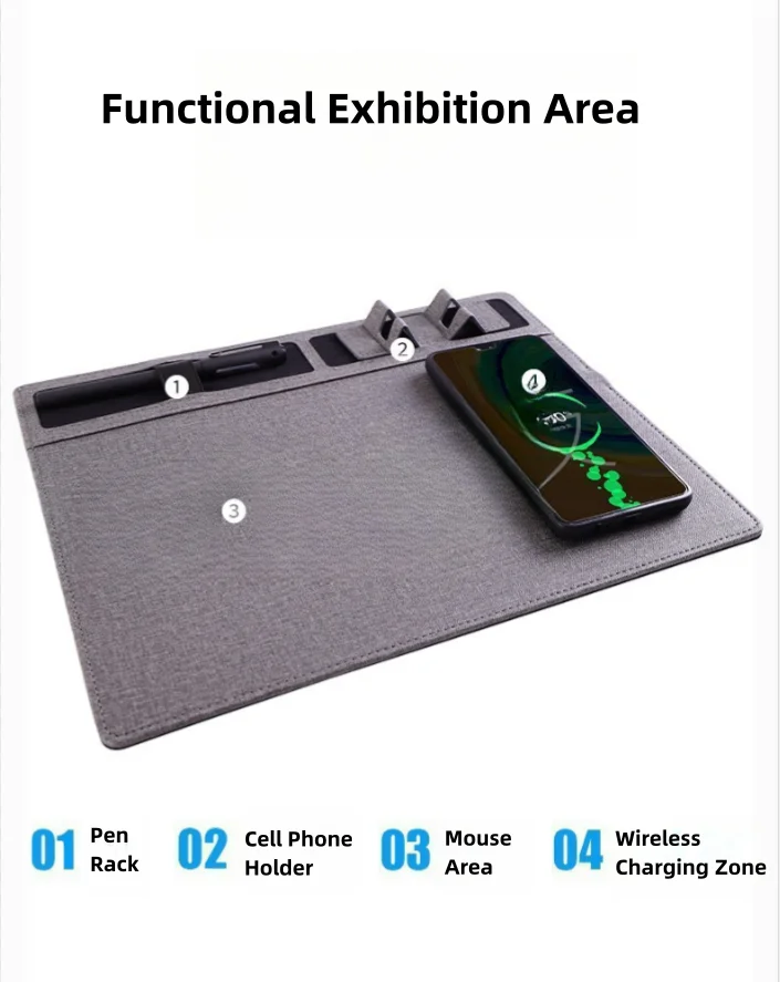 15W Fast Wireless Charging: Instantly charge your Qi-enabled smartphone right on your desk pad—no extra cables needed.